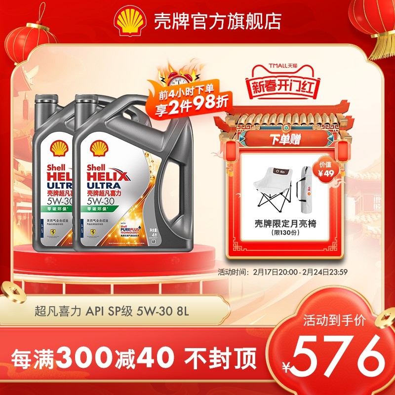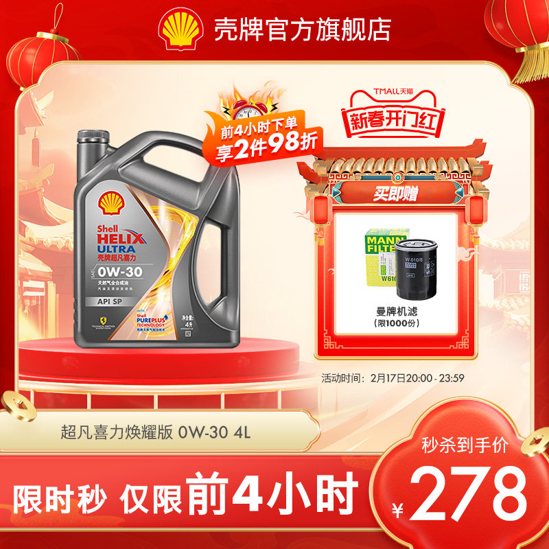 天猫直营壳牌机油灰壳超凡喜力焕耀版0W-30 4L全合成机油 API SP