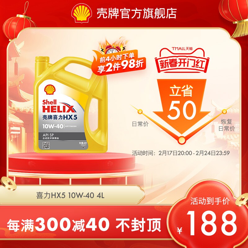 壳牌喜力HX510W-40合成技术润滑油半合成汽车机油官方正品SP级 4L