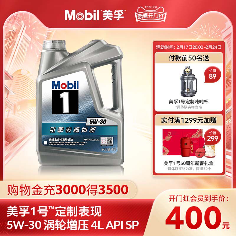 官方正品Mobil美孚1号定制系列涡轮增压5W-30 4L SP全合成机油