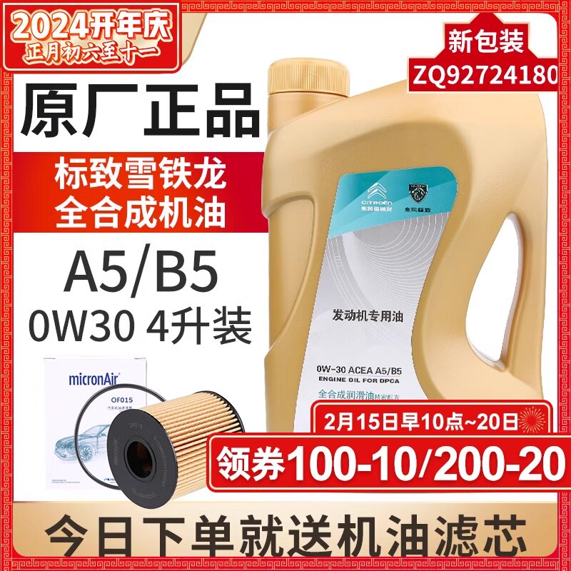 东风标致408 308标志3008 301 0W30全合成机油 原厂专用 A5B5机油