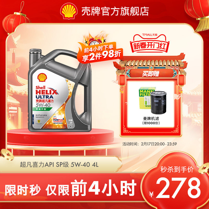 天猫自营 壳牌机油5W-40灰壳超凡喜力SP天然气全合成机油润滑油4L