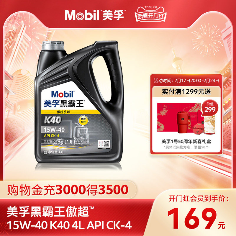 官方正品Mobil美孚黑霸王傲超K40 15W-40 CK-4 4L柴机油发动机