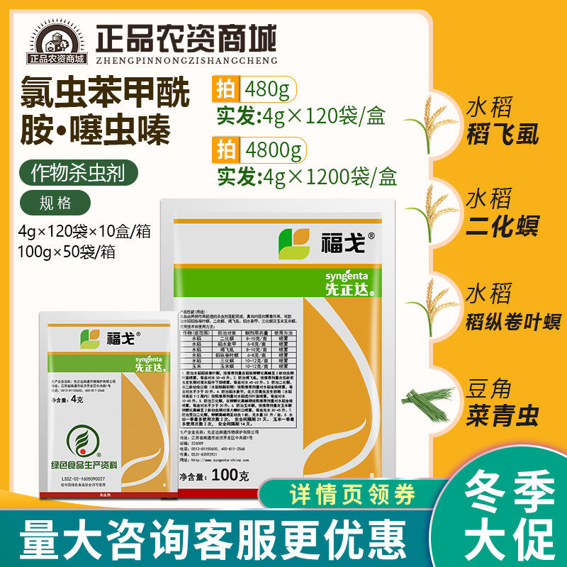 先正达 福戈 氯虫苯甲酰胺+噻虫嗪 水稻钻心虫甘蔗农药杀虫剂4克