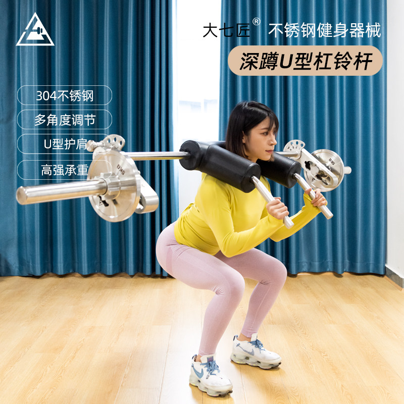 大七不锈钢安全杠铃杆奥杆U型杠铃杆奥杆大弯杆人体功能家用健身