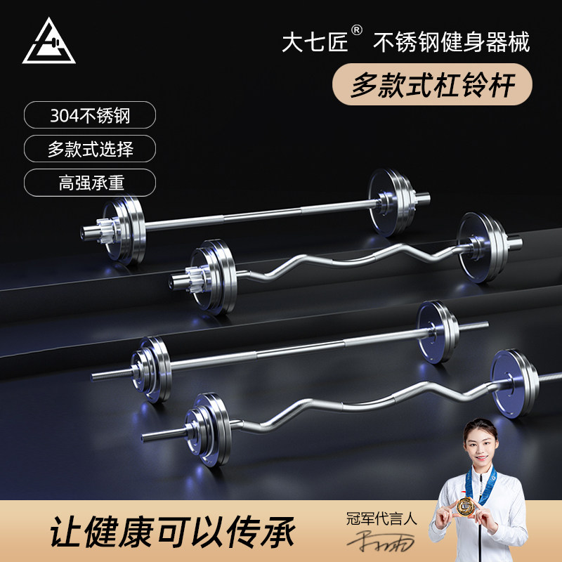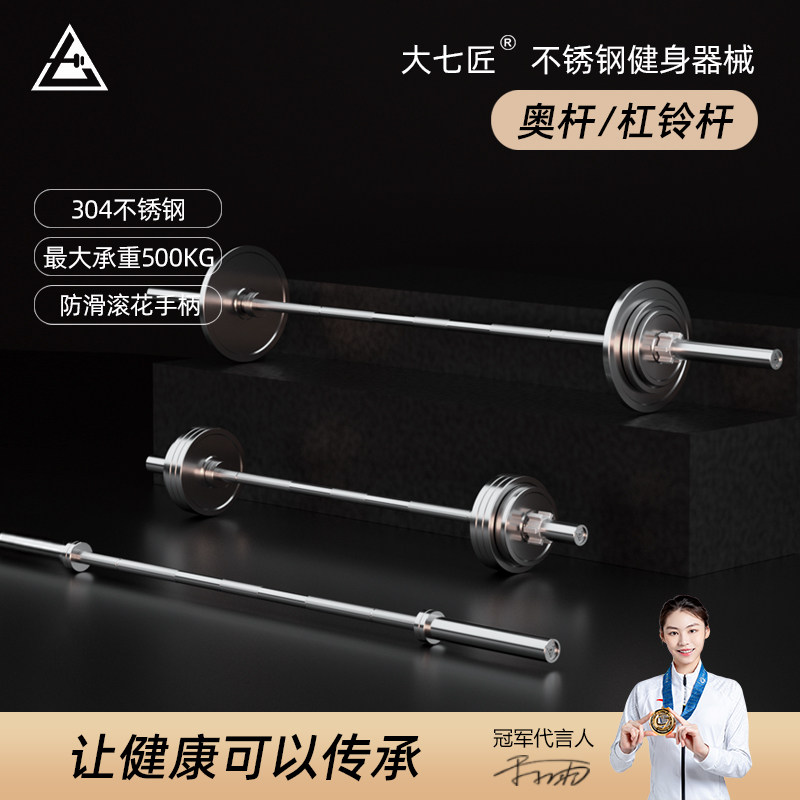大七不锈钢小孔杠铃杆大孔奥杆直杆曲杆家用举重深蹲健身器材
