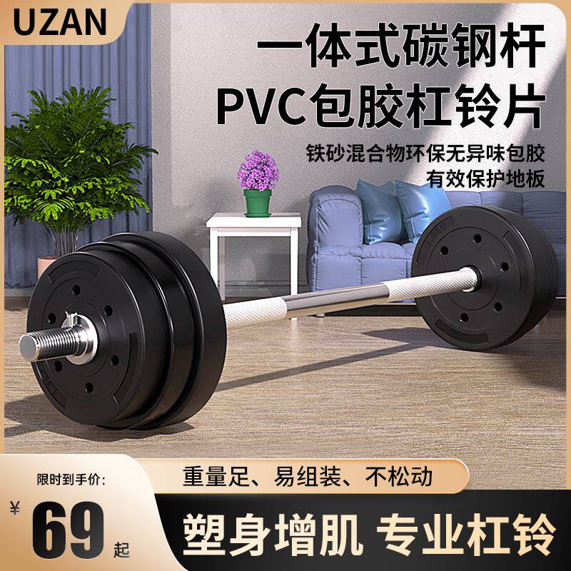 杠铃男士家用健身套装直杆女弯曲杆器材包胶深蹲举重卧推大重量