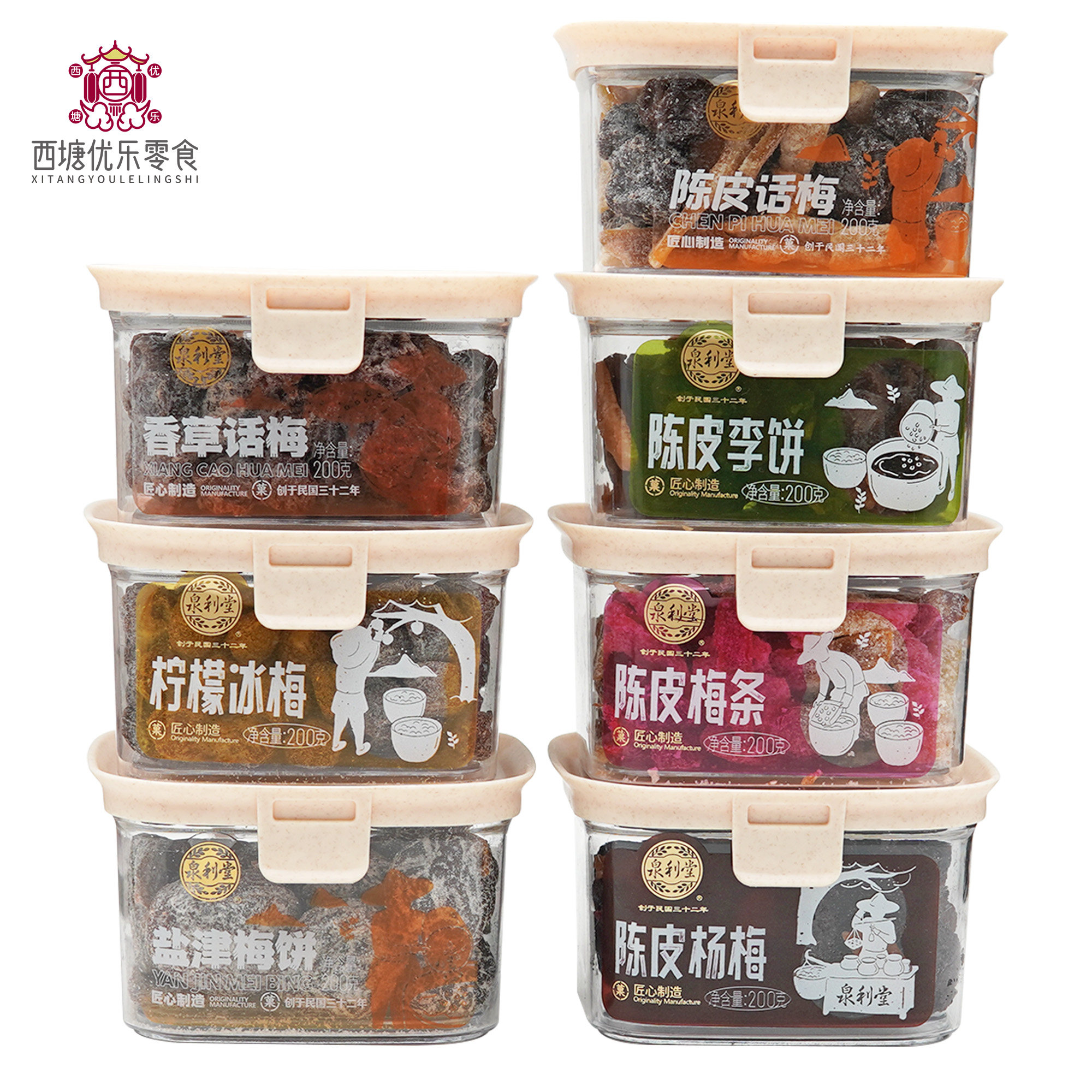泉利堂香草话梅盐津梅饼陈皮李饼梅条杨梅200g多种口味果脯蜜饯