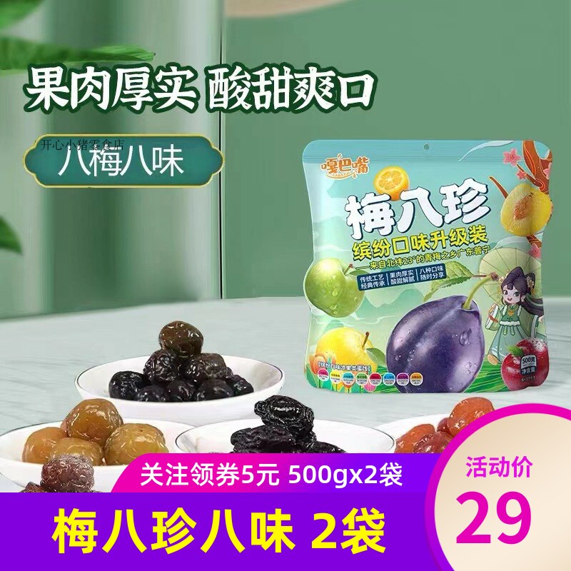 嘎巴嘴梅八珍彩红梅杨梅乌梅500gx2袋开胃果脯蜜饯零食