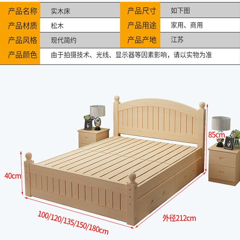 实木床单人床现代简约双人无漆松木热卖定制1m1.2m1.35m1.5m家用