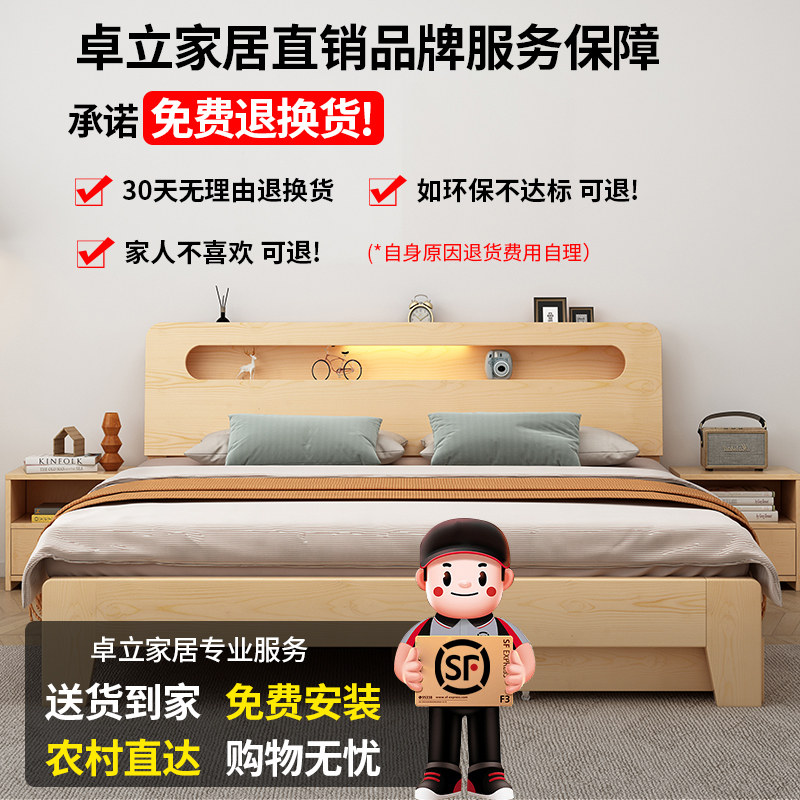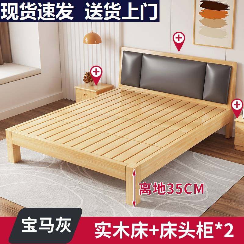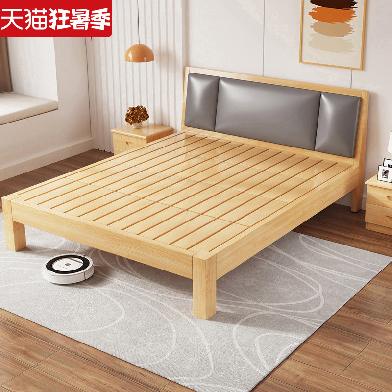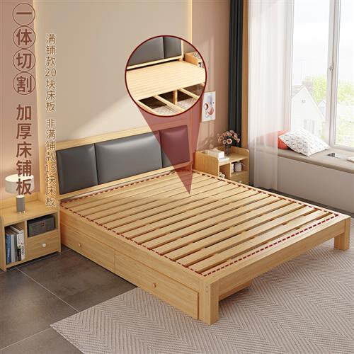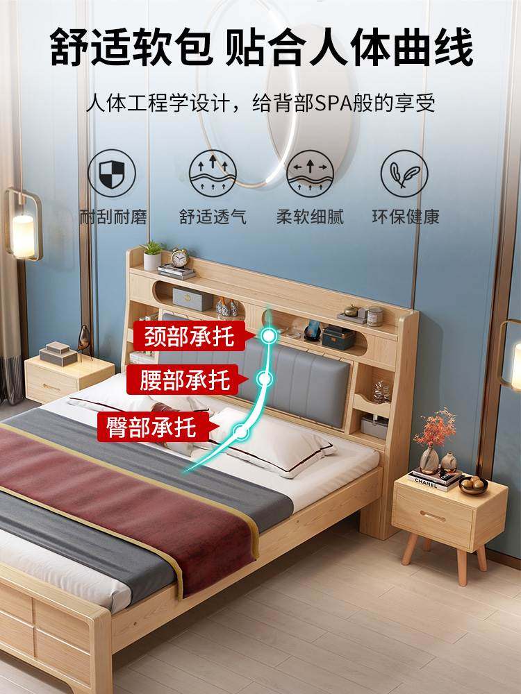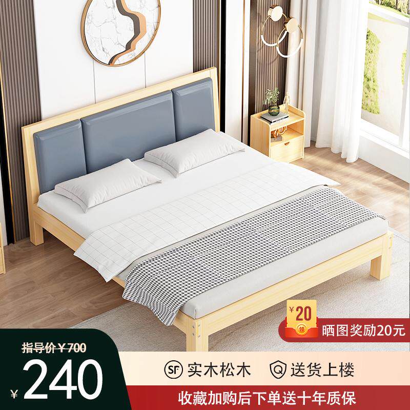 全实木床现代简约卧室1.8双人储物松木床软包主卧出租房1.5单人床