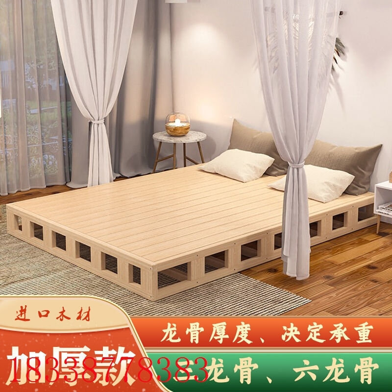 促品无头床床架子排骨架松木床全实木床箱体无床头不带靠背放地上