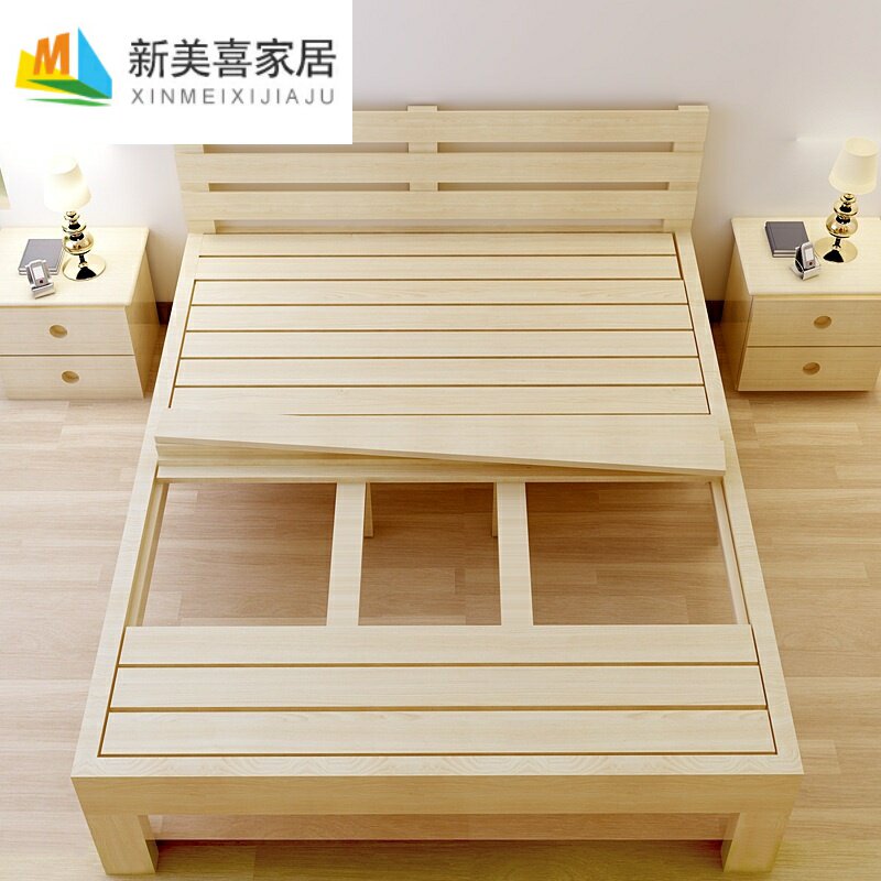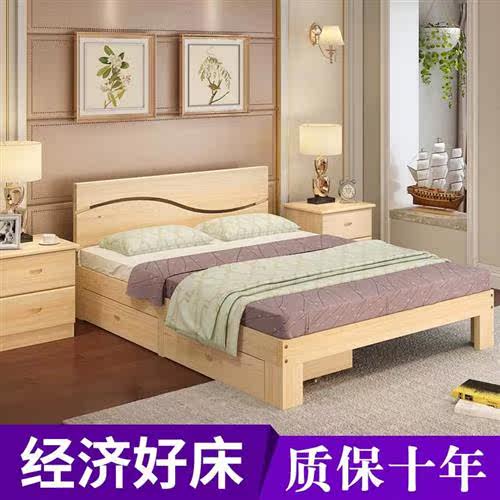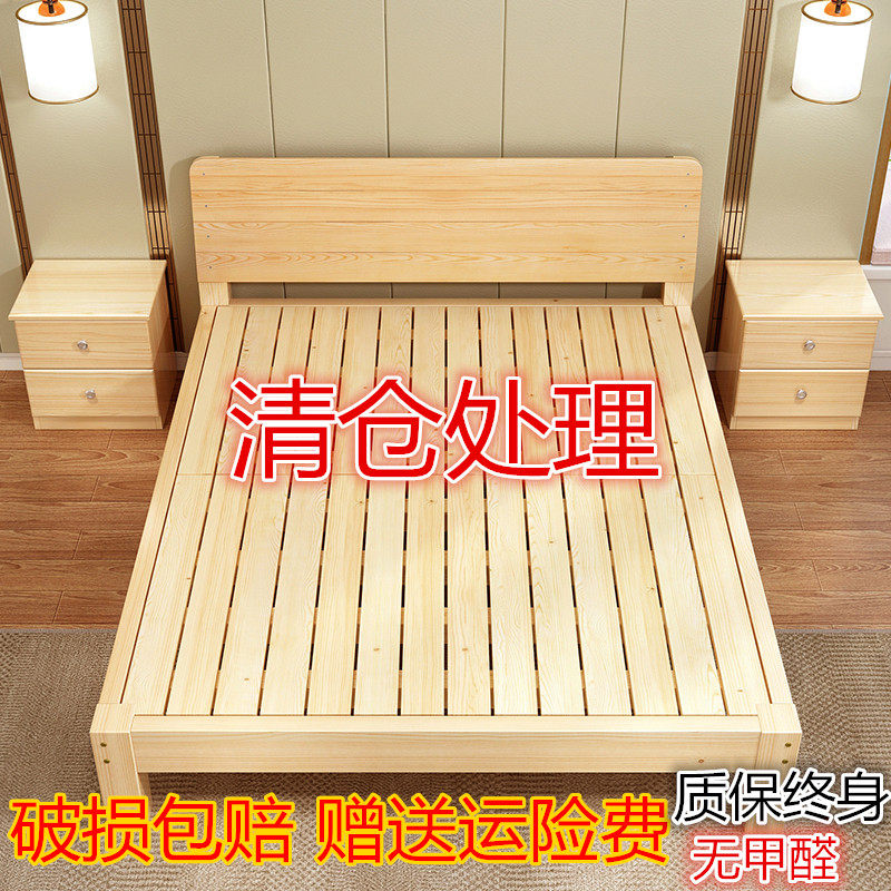 出租房简易实木床1.5米1.8米松木双人床经济型现代简约单人床1.2m