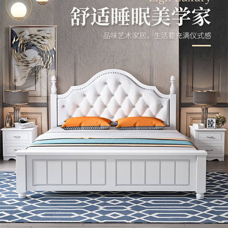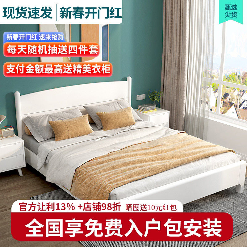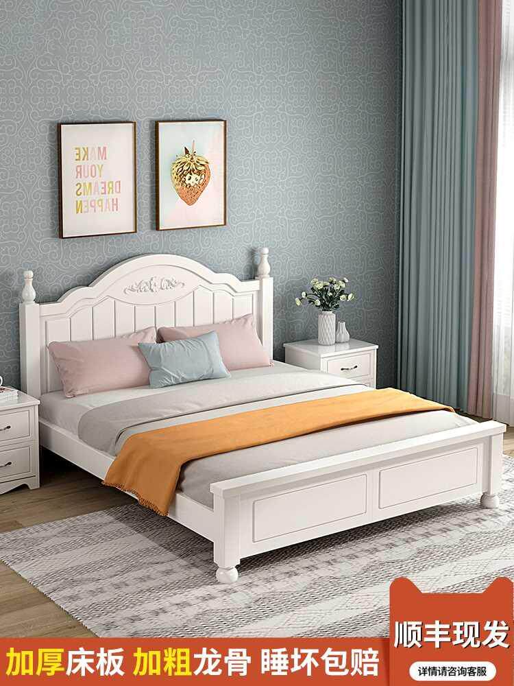 北欧现代简约实木床1.8m双人床主卧轻奢小户型白色1.5m松木单人床