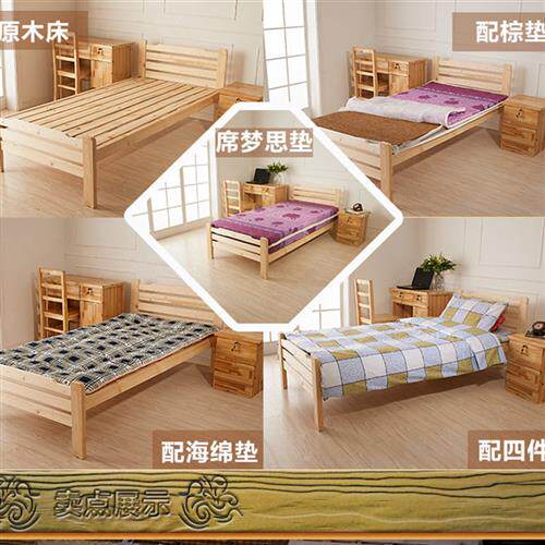 一米1宽的单人床家用1.5/1.8米实木高松木中学生宾馆木板床子