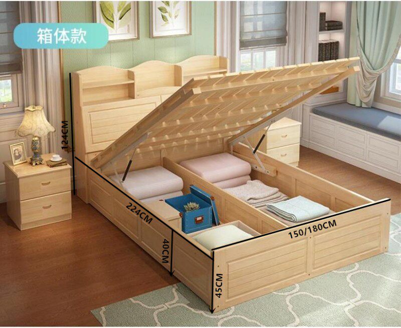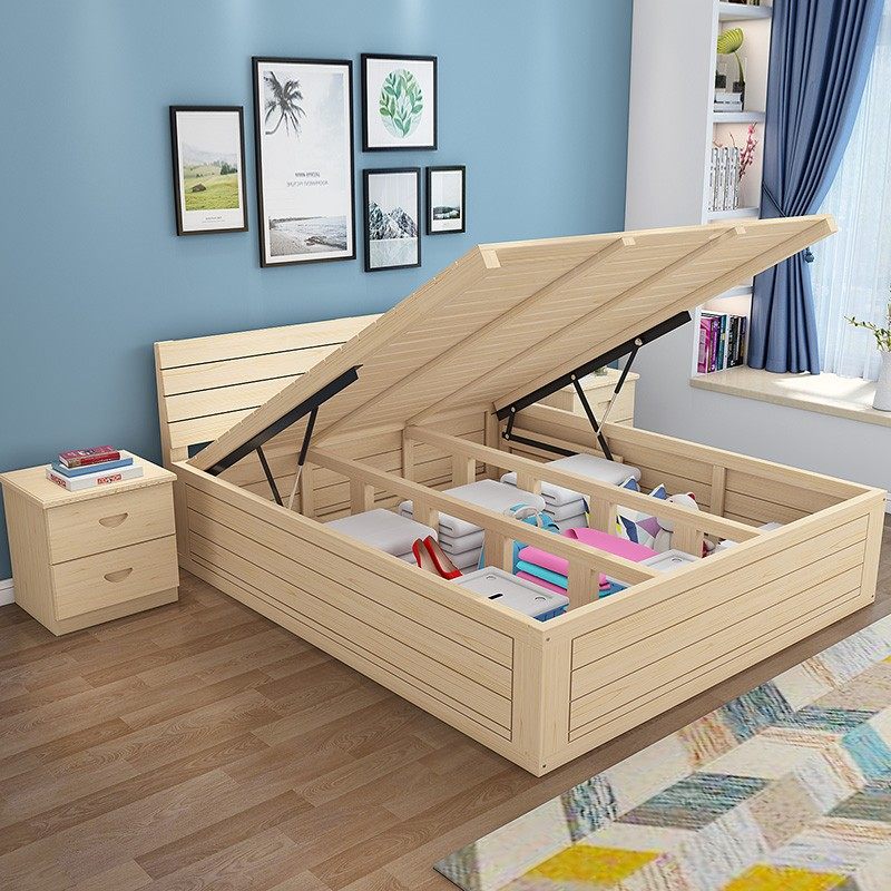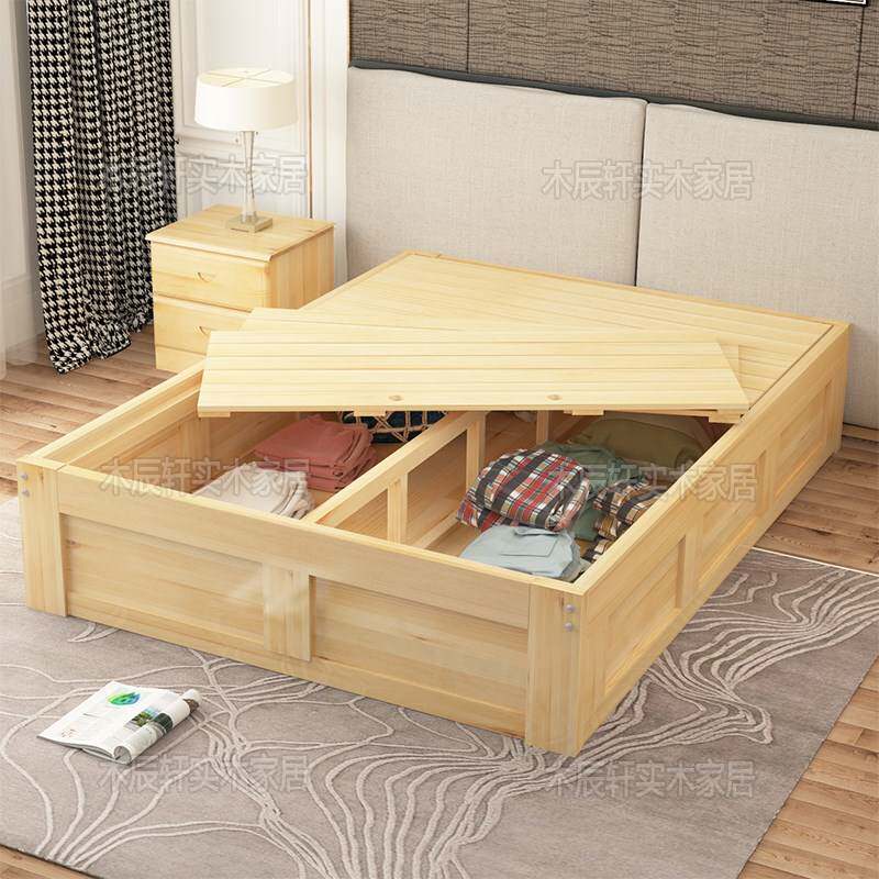 简易实木高箱储物床松木榻榻米单双人地台床小户型气压箱体收纳床