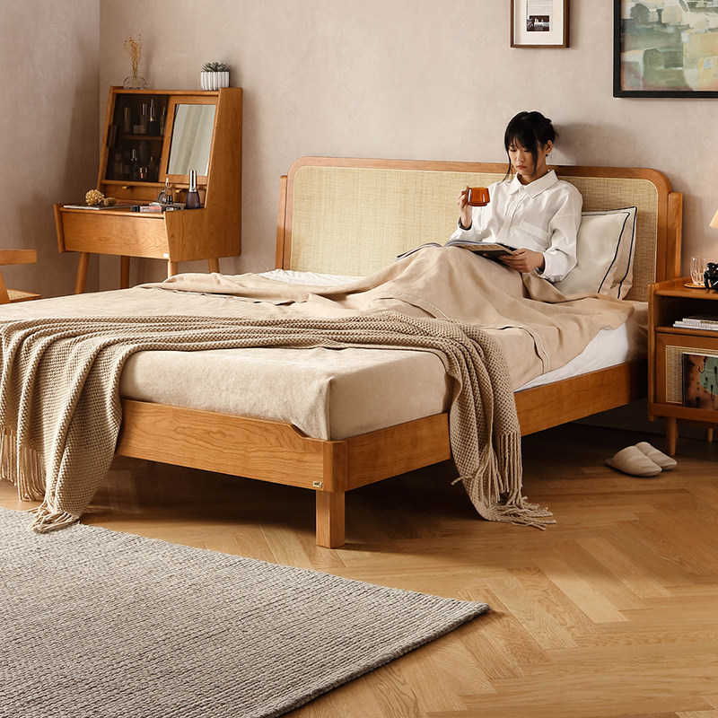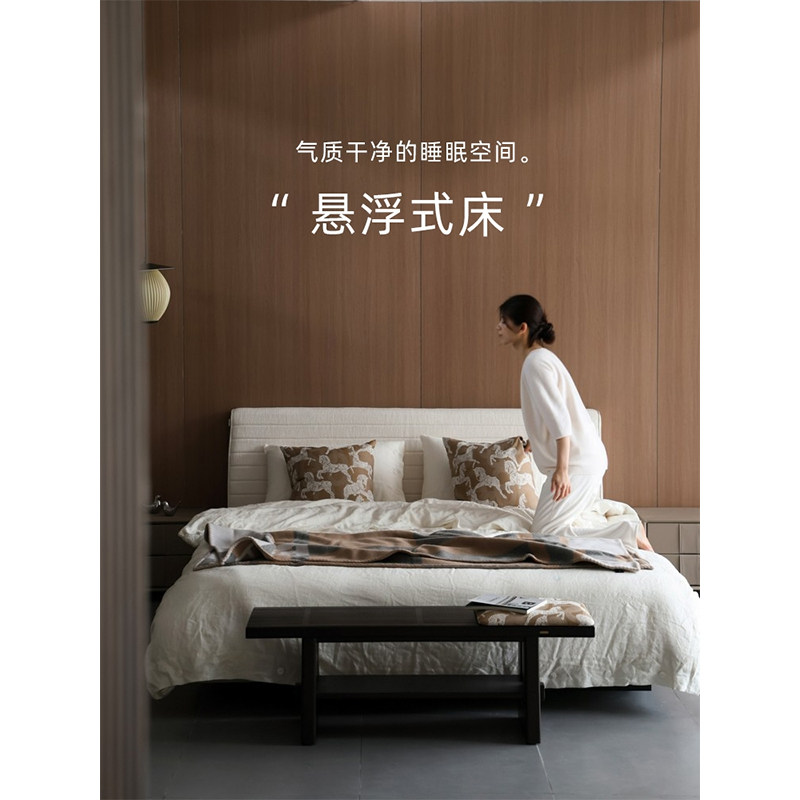 若奈家具 松木实木床CH@NEL珍珠白花呢软包皮缝左右拼合双人床