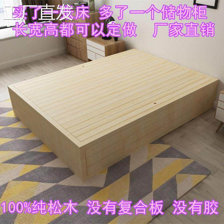 定制实木松木榻榻米箱体床单人双人床高箱气压床地台箱式无床头储