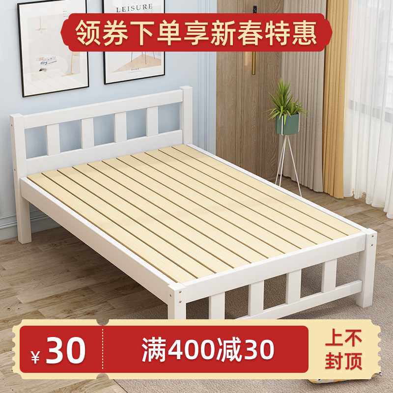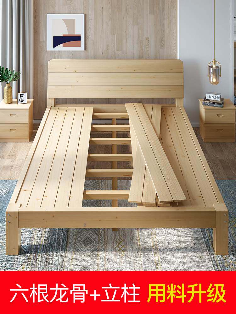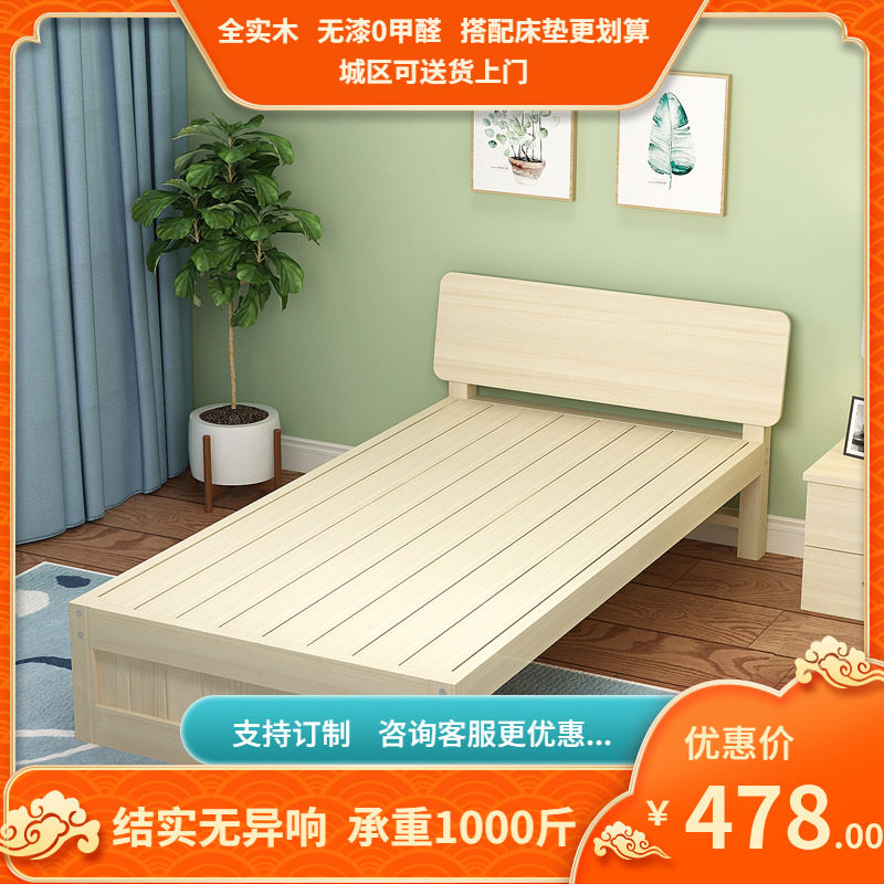 松木床家用加厚实木床租房床经济型单人床成人床学生无漆床定制床