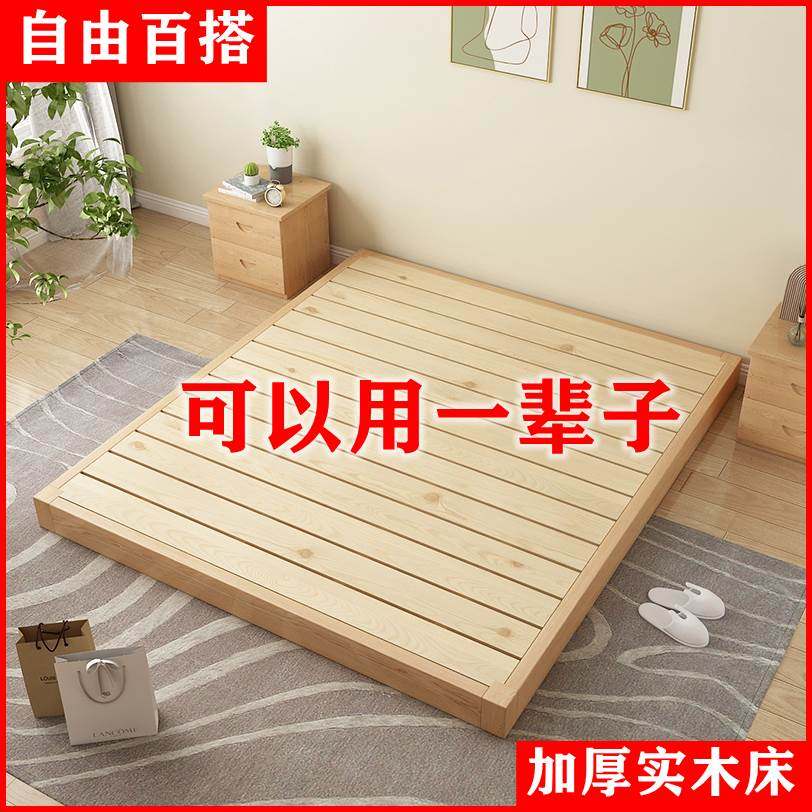 简约现代实木榻榻米18硬板松木12日式矮床床护腰单双人地台网红