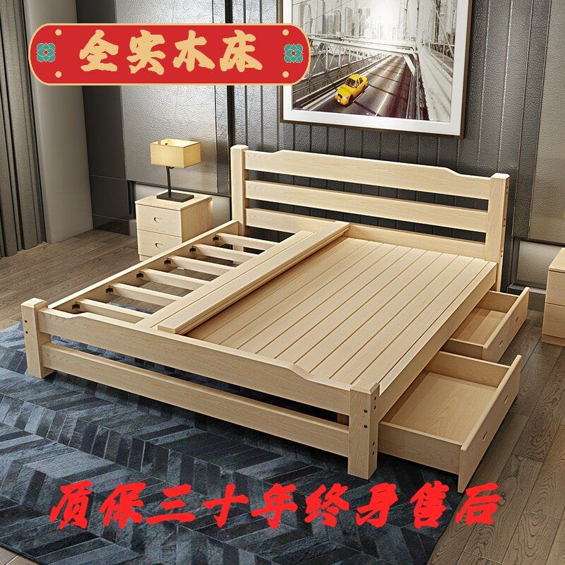 实木床1.5米现代简约1.8米松木双人床家用经济型出租房用单人床架