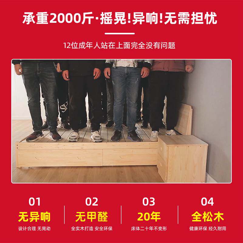好货简易实木高箱储物床松木榻榻米单双人地台床小户型气压箱体收