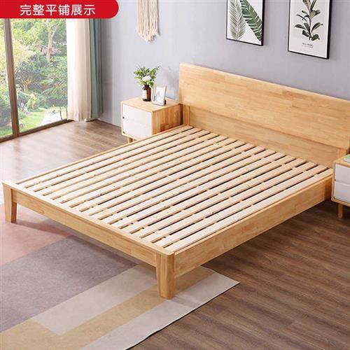 全实木双人床进口松木1.8m简约床铺原木色现代卧室大床经济单人床