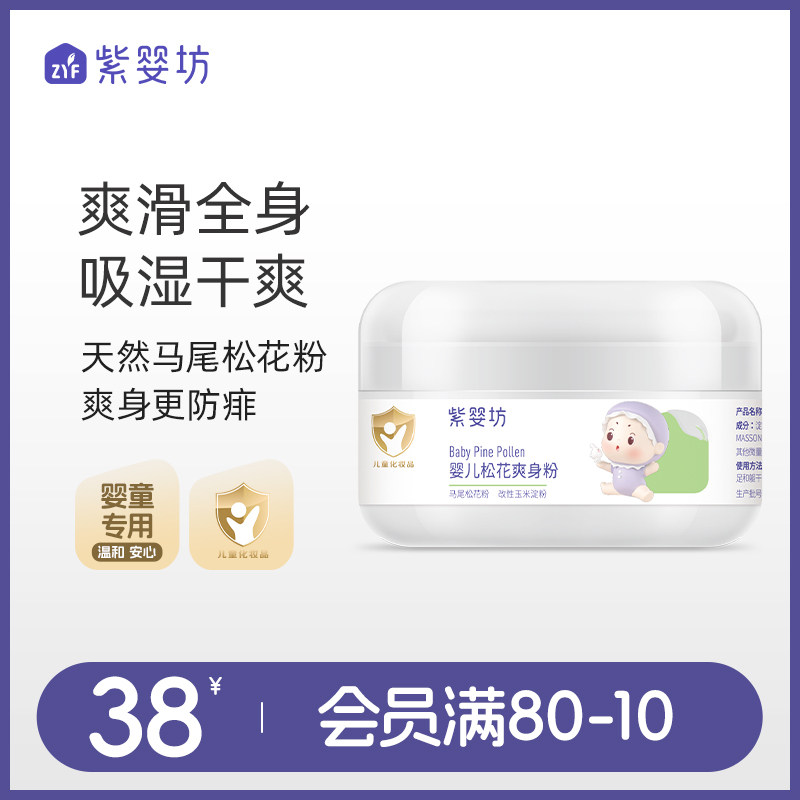 紫婴坊婴儿爽身粉止痒新生儿童祛痱干爽宝宝护肤婴幼儿玉米松花粉