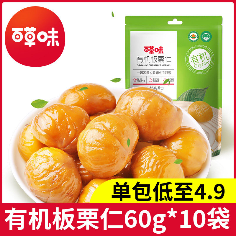百草味板栗仁60g*10袋零食甘栗仁甜毛栗子仁熟板栗仁