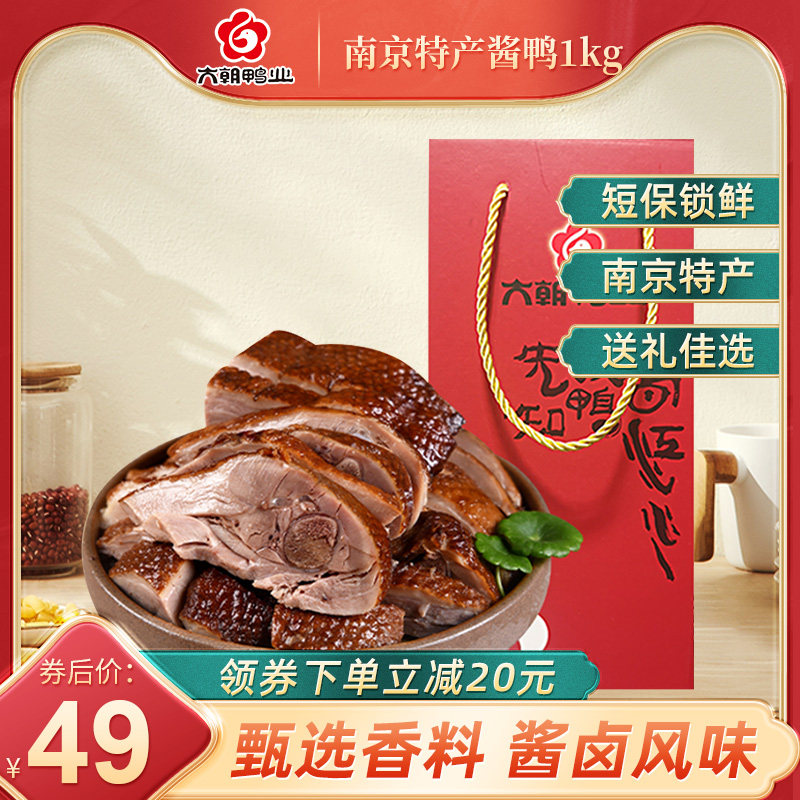 六朝鸭业 酱鸭1kg地道南京特产酱板鸭整只卤味熟食即食礼盒装节日