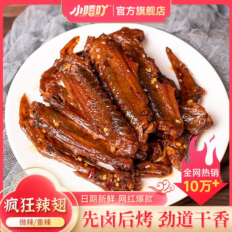 小嘻吖疯狂辣鸭翅膀湖南特产特爆香辣酱板鸭翅卤味熟食追剧肉零食
