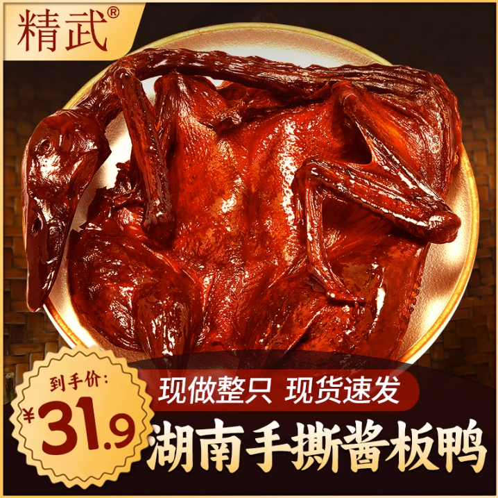 湖南酱板鸭旗舰店常德特产正宗手撕板鸭辣熟食下酒菜零食小吃即食