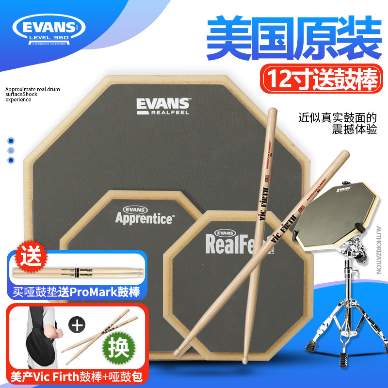 EVANS哑鼓垫RealFeel HQ 6 12寸单双面架子鼓练习静音亚鼓打击板