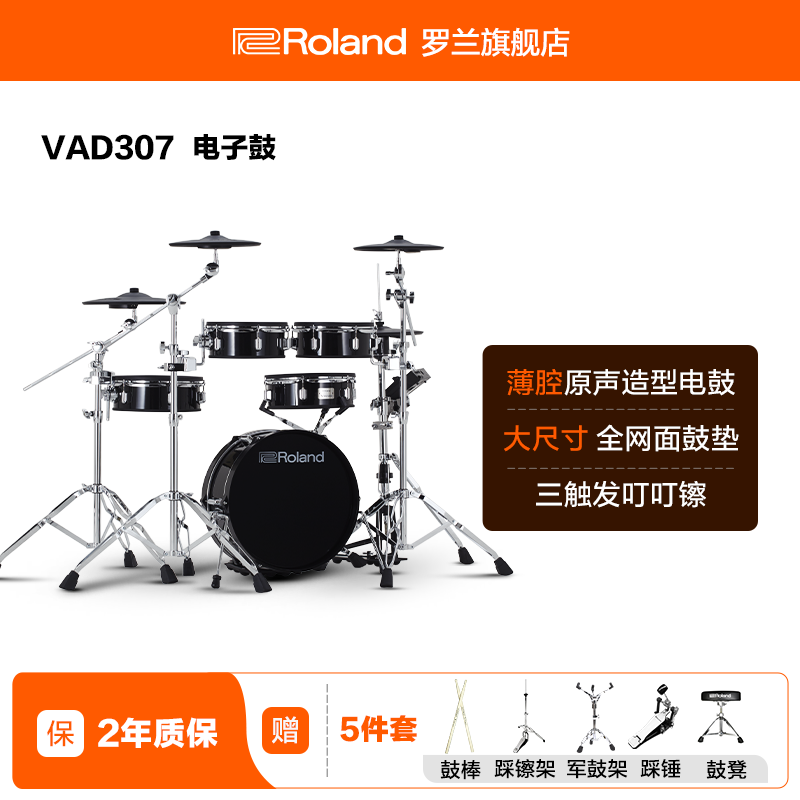 Roland罗兰VAD307电鼓木质鼓腔高端成人专业演奏演出架子鼓爵士鼓