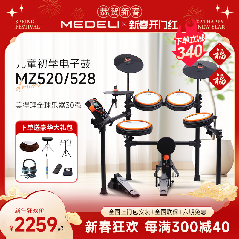 Medeli美得理魔鲨MZ528/520 MZ726网面儿童初学者便携电鼓架子鼓