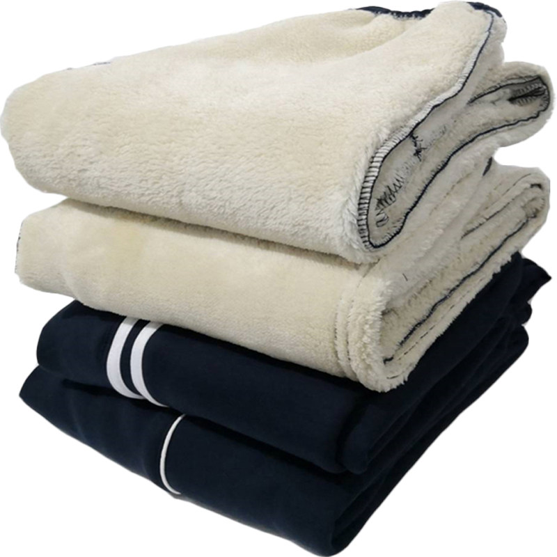 羊羔绒加绒加厚初中校服裤子高中学生深蓝色一条杠冬季保暖运动裤