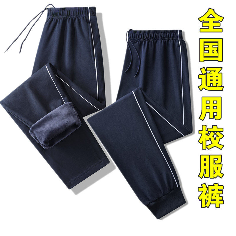 一条杠校服裤男女初中高中学生深蓝校裤纯棉冬季春秋加厚直筒加绒