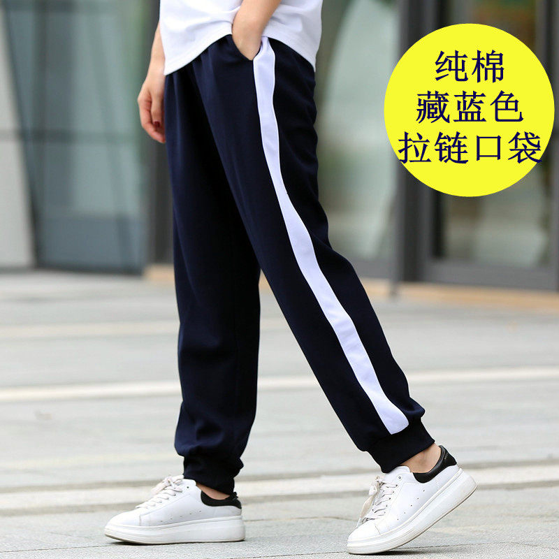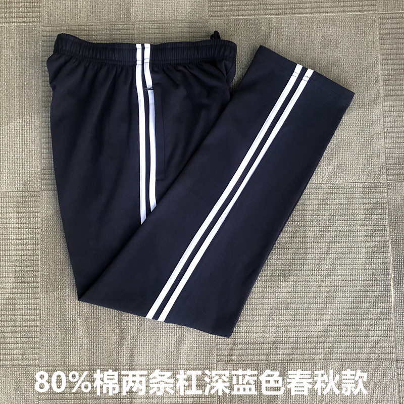 纯棉冬季校服裤子男女宽松藏蓝一条杠深蓝色小学高中学生春秋校裤