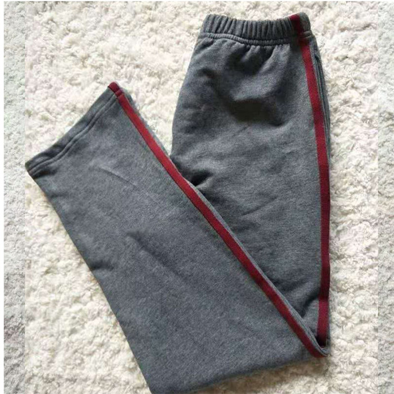 浅灰加绒高腰收口校服裤子一道酒红宽杠运动裤松紧腰宽松束脚长裤