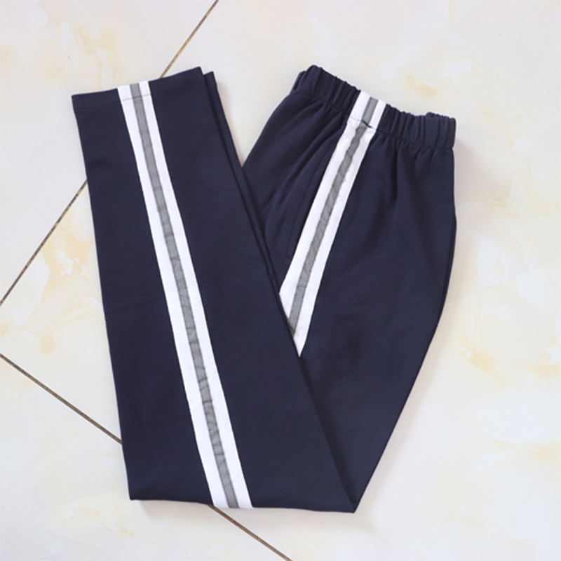 初高中学生裤校裤运动裤校服裤一条杠白边男女学生裤深蓝色修身裤