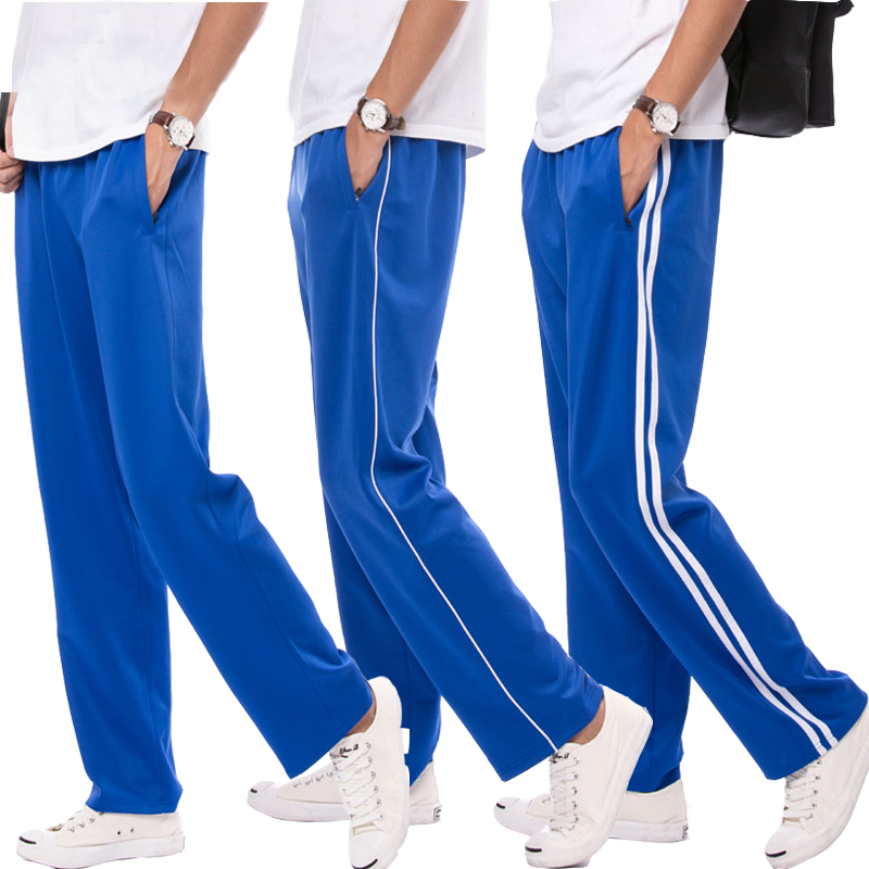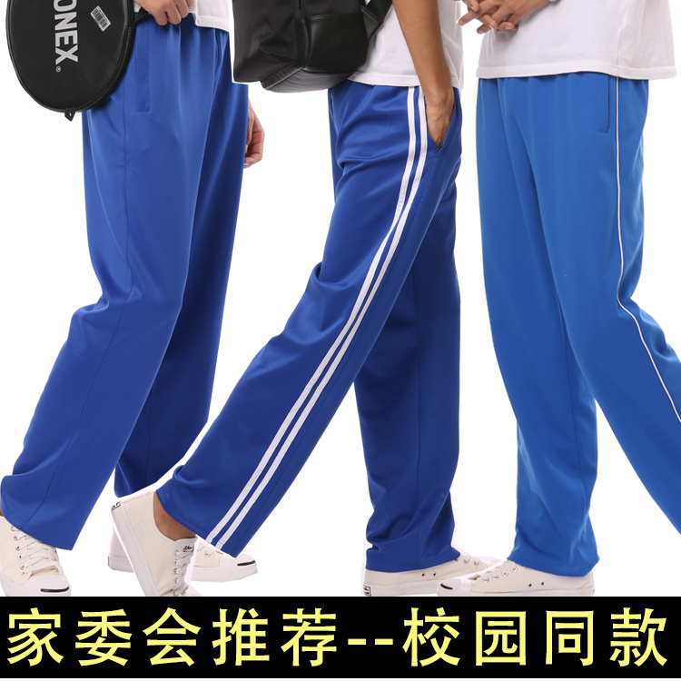 校服裤子男女收口宽松运动长裤高中小学生宽白条一道杠宝蓝色校裤