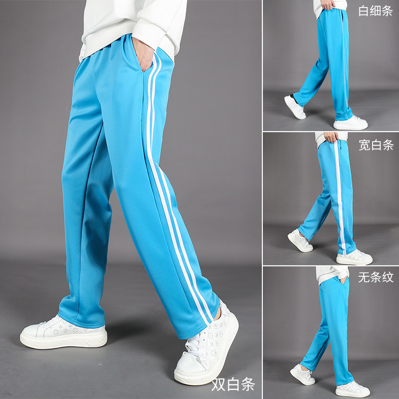 热销天蓝色校服裤子秋季运动裤男长裤中学生校裤女裤宽松加绒冬款