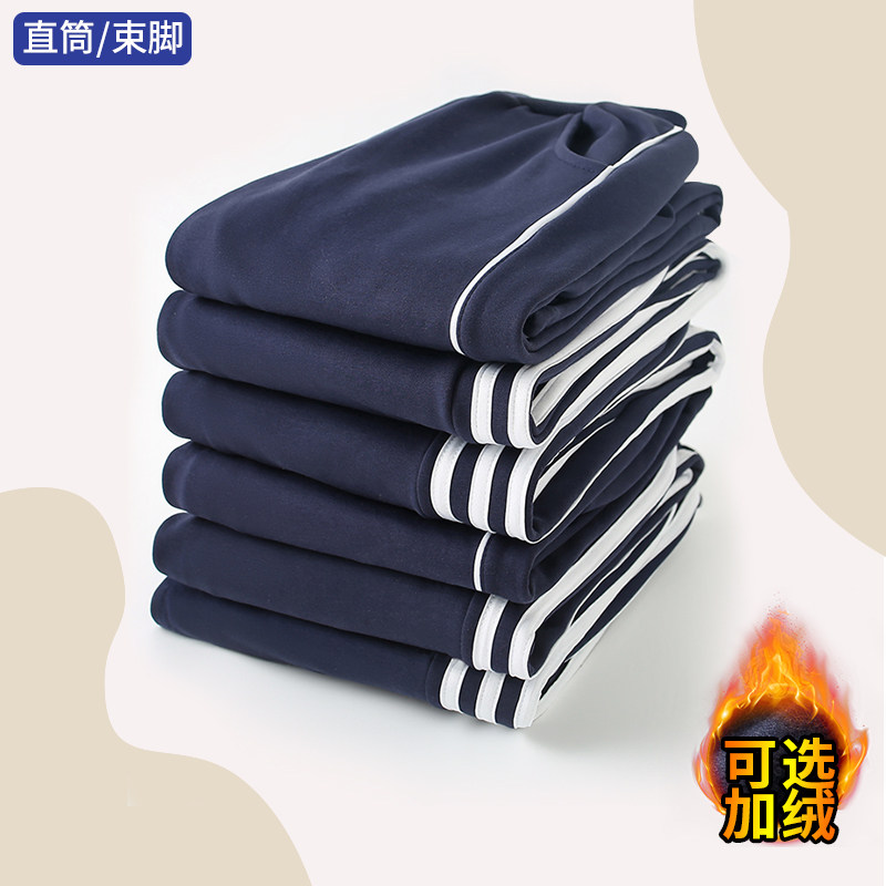 校服裤子直筒冬季深蓝色蓝条红条白条冬季加绒保暖加厚小学初高中