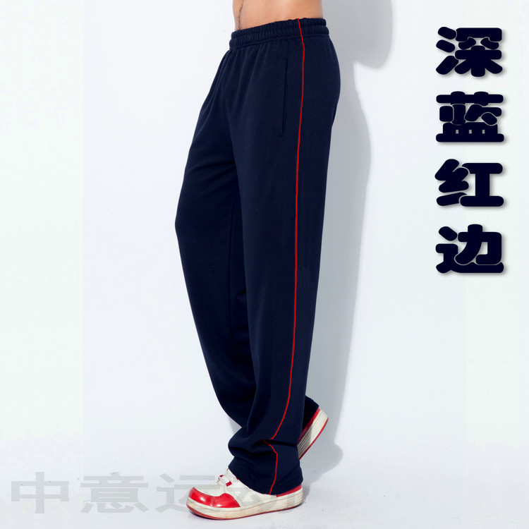 秋冬季棉款学生校服裤子一条红边直筒深蓝藏青色长裤加绒加厚