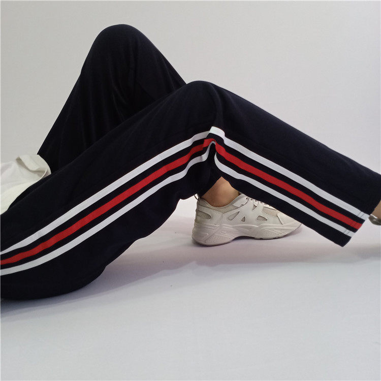 校服裤子男女通用直筒宽松高中小学生白红白分条三道杠藏蓝色校裤