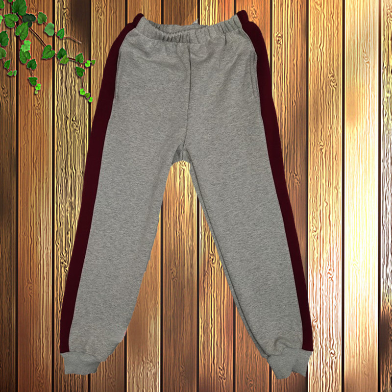 可定制春秋校服裤子深灰毛圈棉一道酒红杠运动初中小学生团体长裤