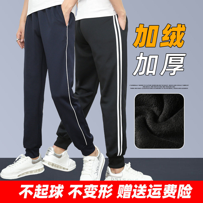 校服裤子男冬加绒加厚宽松学生女一条杠两条杠运动裤保暖校裤包邮