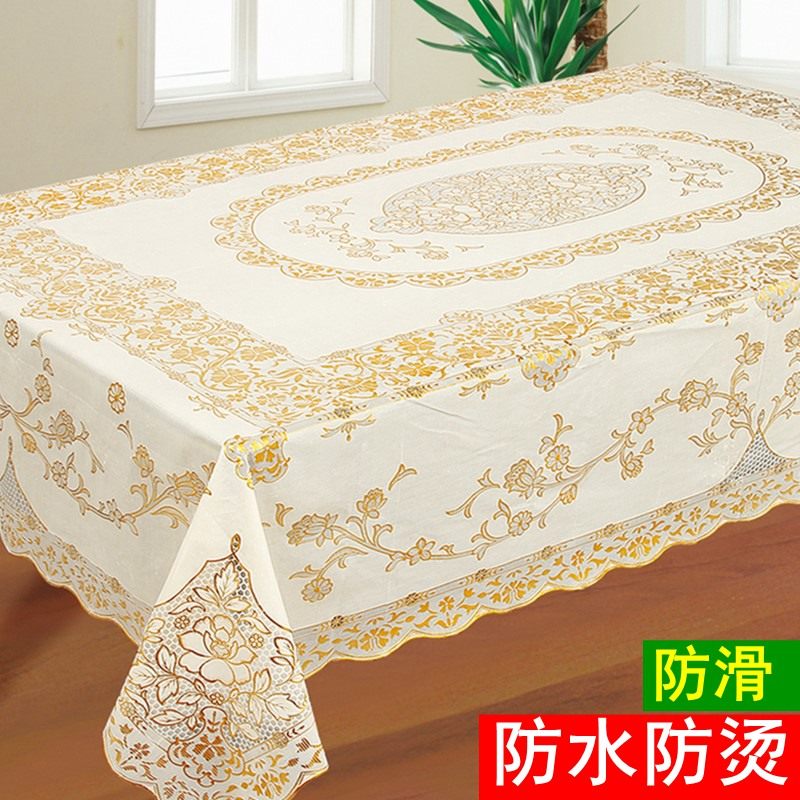 桌布防水防油免洗方桌布正方形pvc蕾丝金色餐桌台布方桌布塑料
