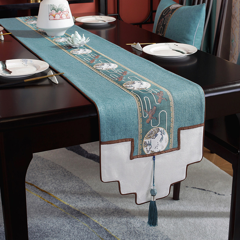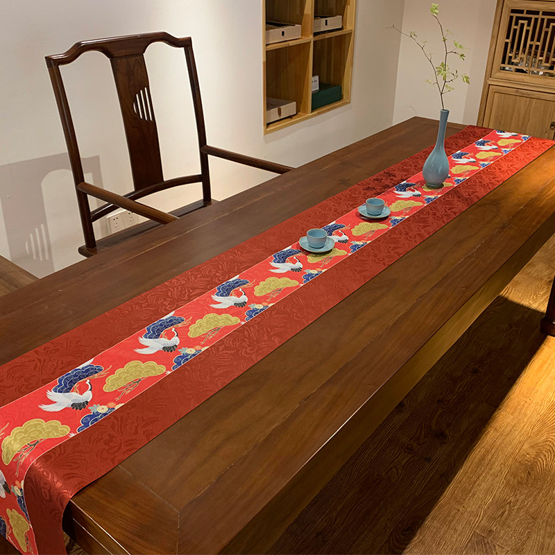 飞鹤柏中式禅意防水茶席织锦茶台茶几桌旗桌布高端轻奢茶室桌旗布