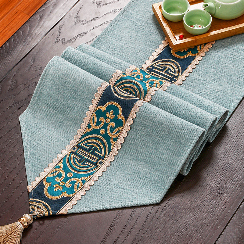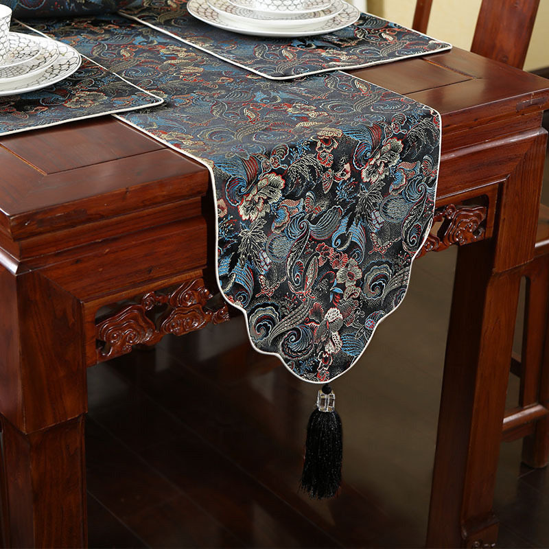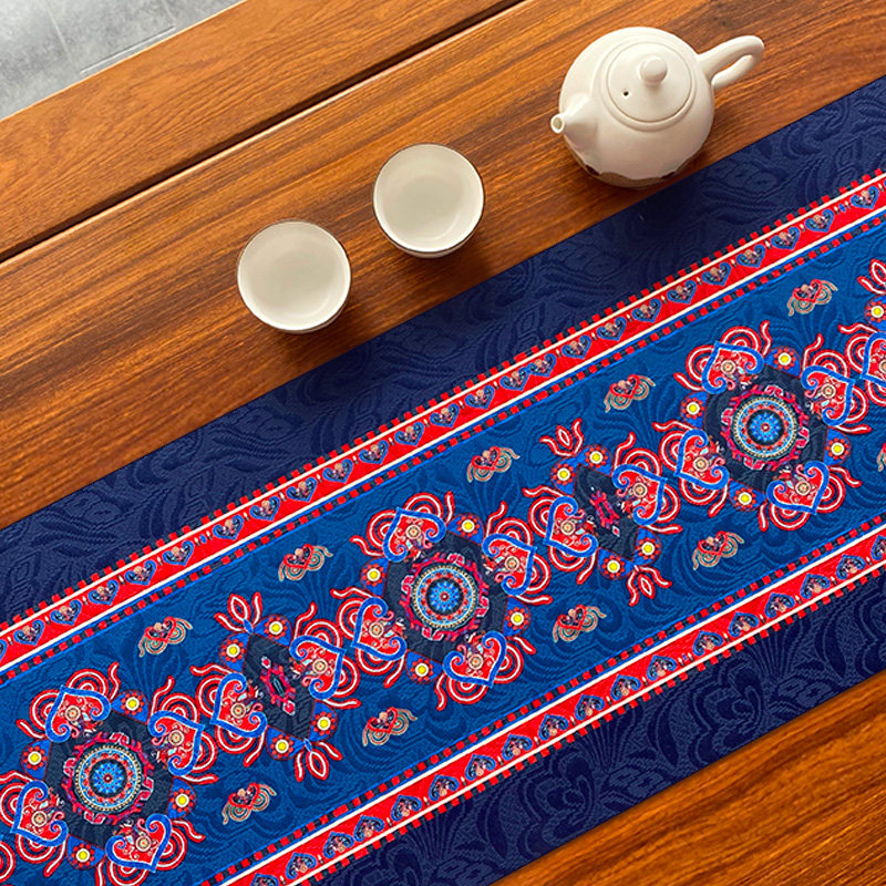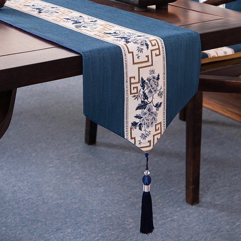 敦煌宝相花新中式桌旗茶席中式禅意布艺长条茶桌餐桌茶几茶桌垫布
