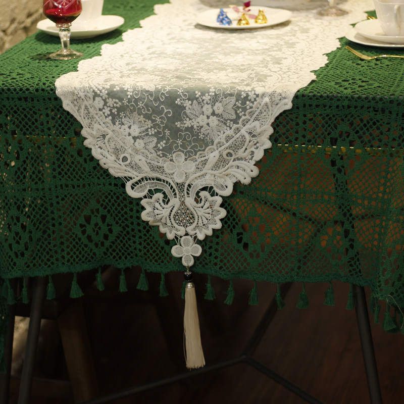 Retro手工法式美式桌旗白色满花绣花蕾丝茶几餐桌电视柜边柜盖布